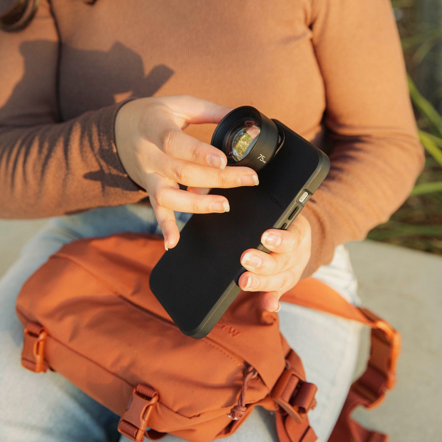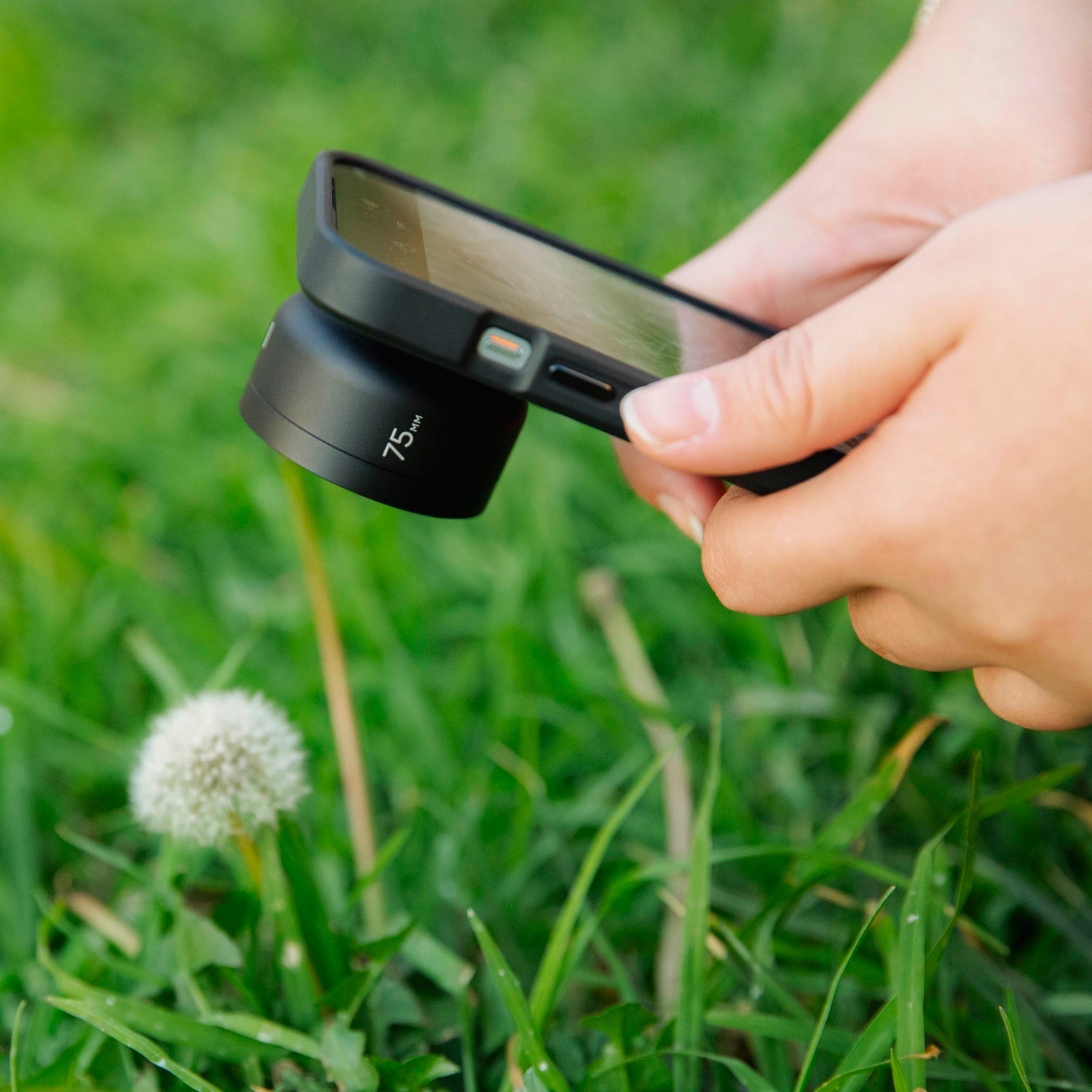 Get incredibly close to your subject with the Macro 75mm. Different from traditional macro photography, this lens works less than four inches away from the subject to capture rich textures, materials, and small moving objects that our phones were never before capable of seeing. Made with 25% more glass, this lens is crisp edge to edge on the latest iPhone and Android phones.